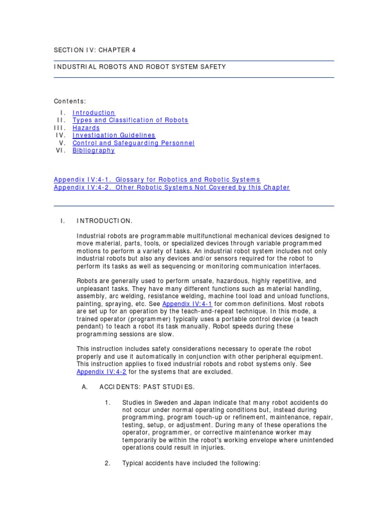 Osha Technical Manual Otm Section Iv Chapter 4 Industrial Robots And Robot System Safety Occupational Safety And Health Administration