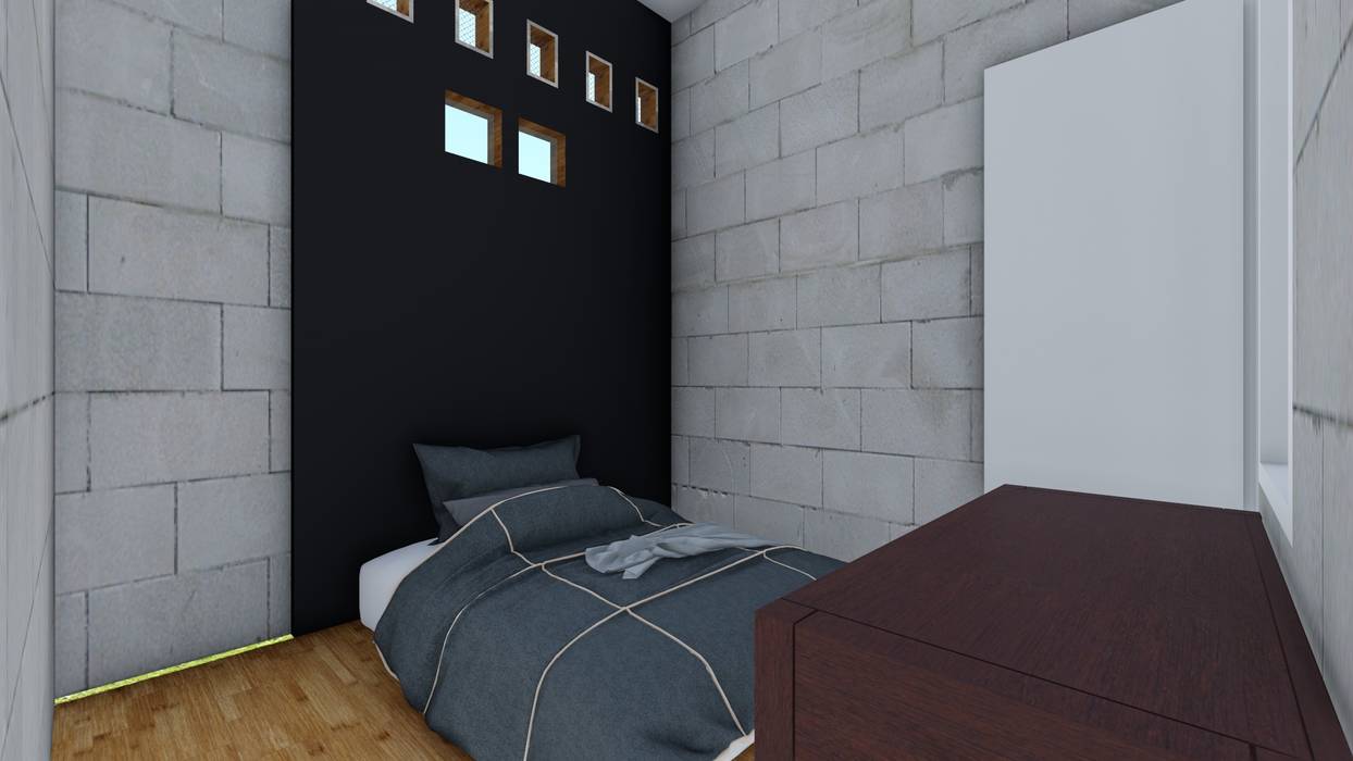 Renovation Boarding House Aparch Architecture And Design Industrial Style Bedroom Bricks Grey Homify