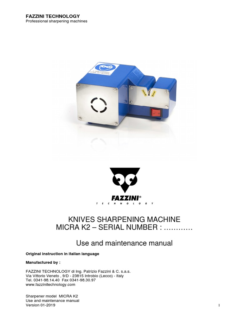 Knives Sharpening Machine Micra K2 Serial Number Use And Maintenance Manual Knife Blade