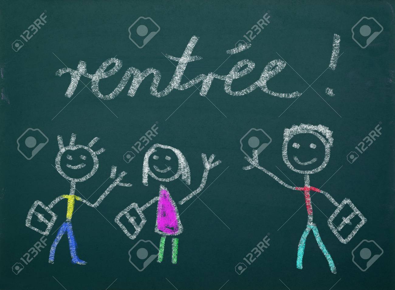Immagini Stock Disegni Di Scuola Kid S Sul Verde Lavagna Francese Scrittura Rentree Image