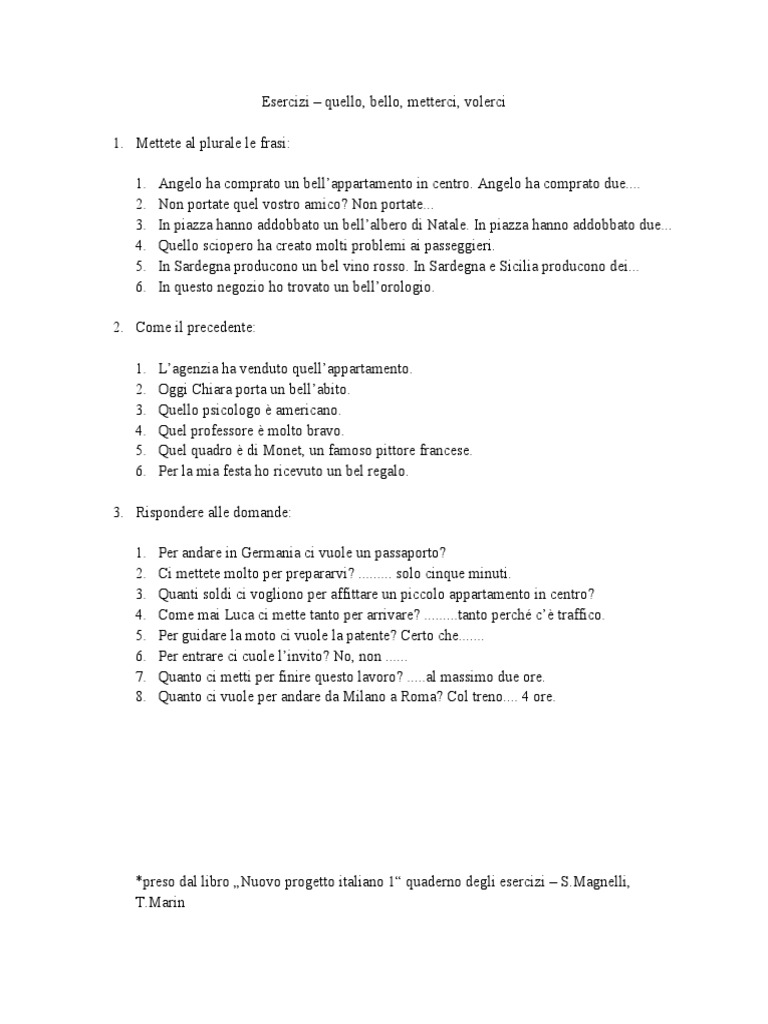 Esercizi Quello Bello Metterci Volerci