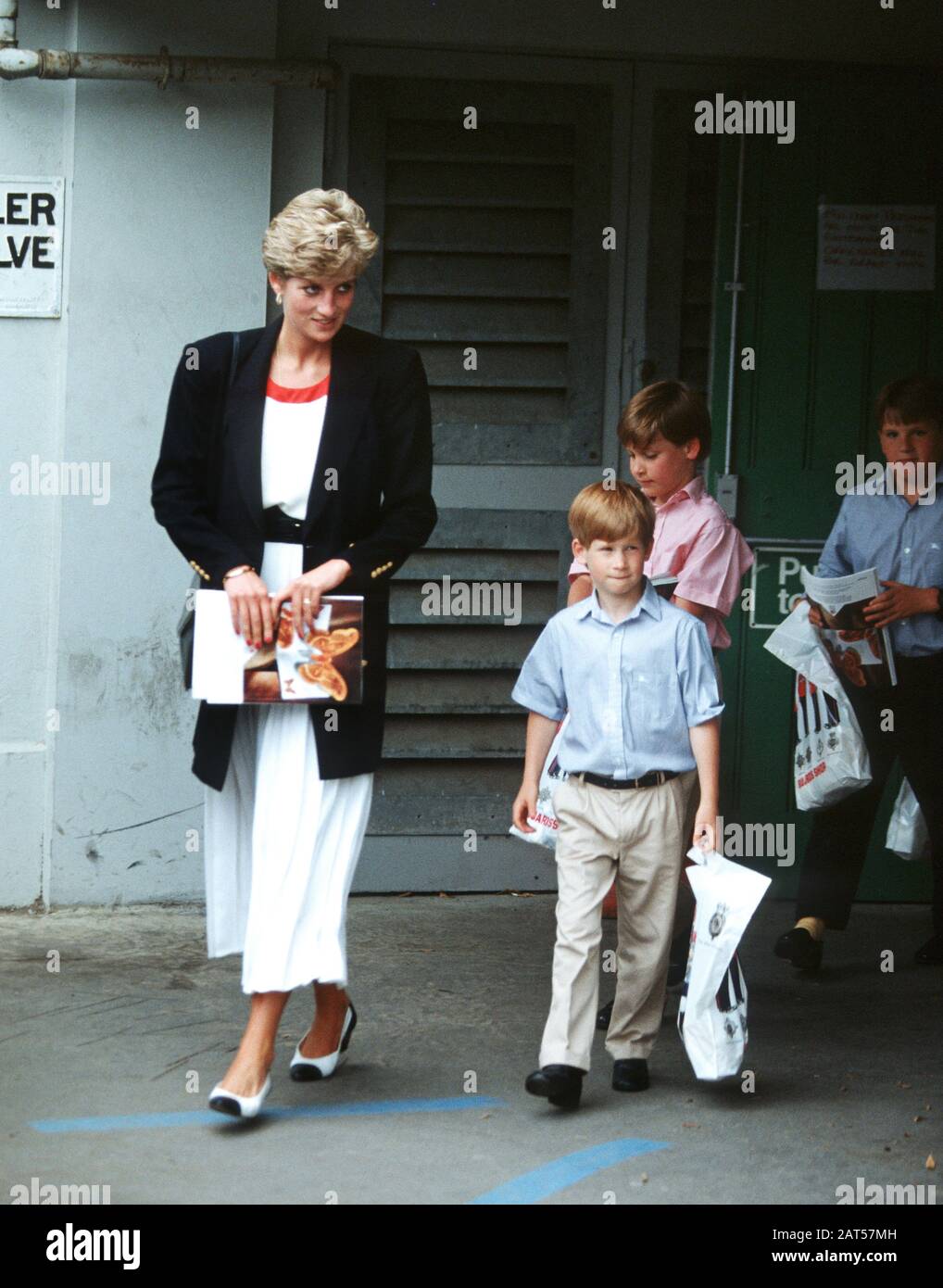 Trh Princess Diana Prince Harry And Prince William Rear Depart Earls Court After Watching The Royal Tournament London Britain July 1991 Stock Photo Alamy