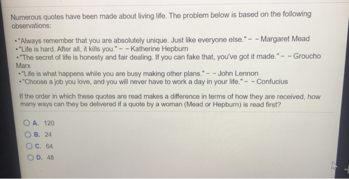Solved Numerous Quotes Have Been Made About Living Life Chegg Com