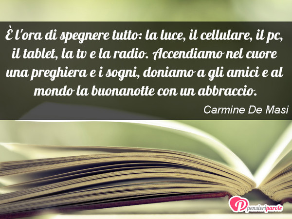 Io ti ringrazio che hai dato riposo al corpo e all’anima La tua mano era su di me e mi hai protetto e difeso Perdona tutti i momenti di poca fede e tutte le ingiustizie di questo giorno e aiutami a perdonare. View deals for Spegni La Luce B&B, including fully refundable rates with free cancellation Agropoli Castle is minutes away WiFi and parking are free at this B&B All rooms have LED TVs and rainfall showers. Frasi Buonanotte Frasi Di Buonanotte, Citazioni, Aforismi Pensieri Per la Buonanotte Frasi Sulla Buonanotte 4tu© “Certe notti iniziano solamente quando spegni la luce in quel momento in cui abbassi “le difese” e la tua testa, che pensavi di avere chiuso a chiave, viene scassinata per bene ci sono pensieri che non sono contenti.
