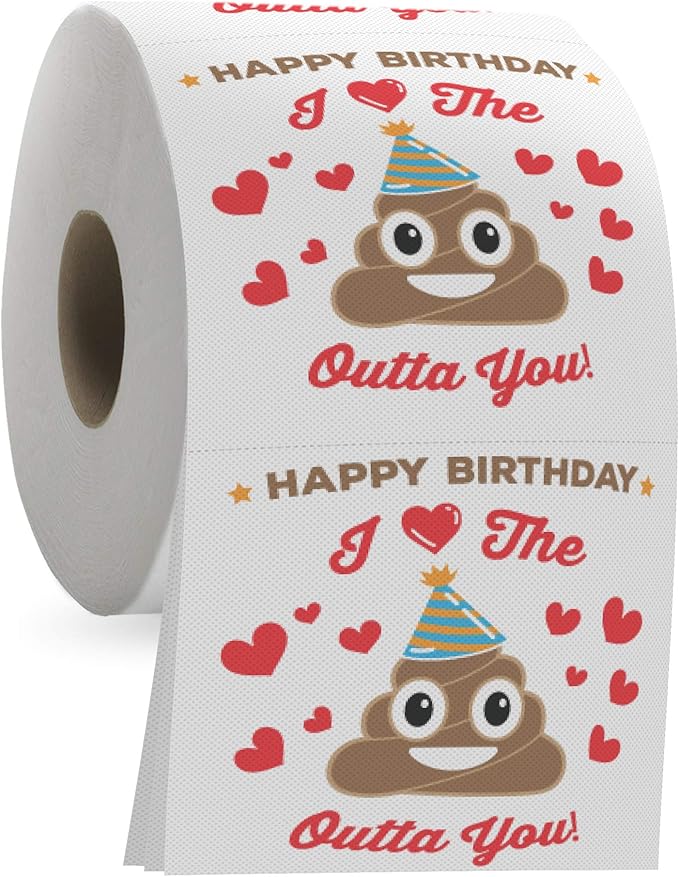 Divertente Rotolo Di Carta Igienica Con Scritta In Lingua Inglese Happy Birthday Con Scritta In Lingua Inglese I Love The Poop Outta You Divertente Idea Regalo Per Il Bagno Amazon It Giochi E