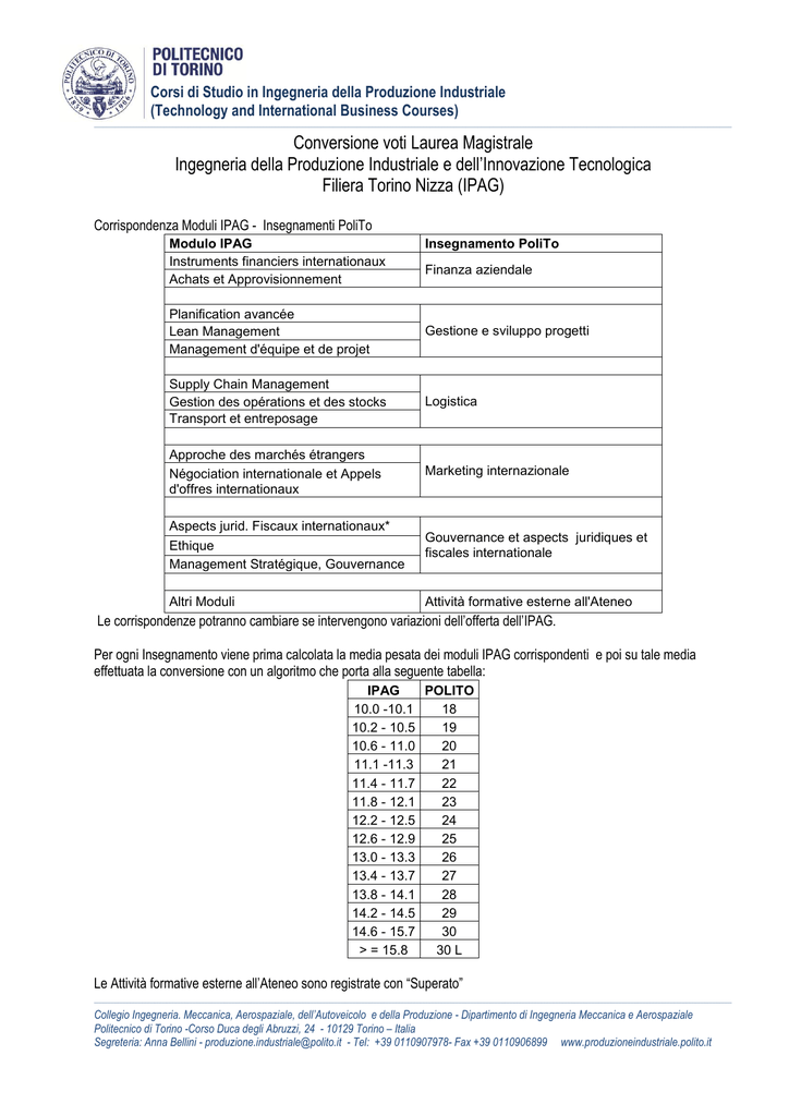E’ stata inoltre fortemente rinnovata la squadra manageriale della società, introducendo competenze di rilievo internazionale sul fronte dell’ingegneria, della compliance normativa e del. Il terzo () all. Appunti universitari condivisi per ingegneria della produzione industriale e dell'innovazione tecnologica Curriculum ipag nizza (Politecnico di Torino) da studenti universitari UniDocs è la community dove puoi condividere i tuoi appunti ed accedere a tutto il materiale del tuo corso di laurea.