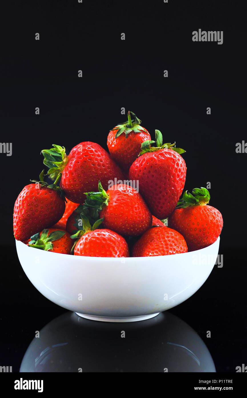 Appena Raccolte Le Fragole Inglese Impilati In Una Ciotola Bianco Foto Stock Alamy