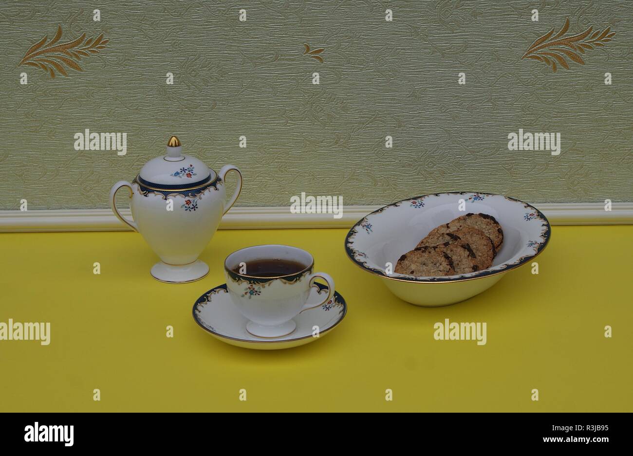 Inglese Tazzina Con Piattino Zuccheriera E Una Torta Ciotola Con I Cookie Raffinato Osso Di Cina La Porcellana Foto Stock Alamy