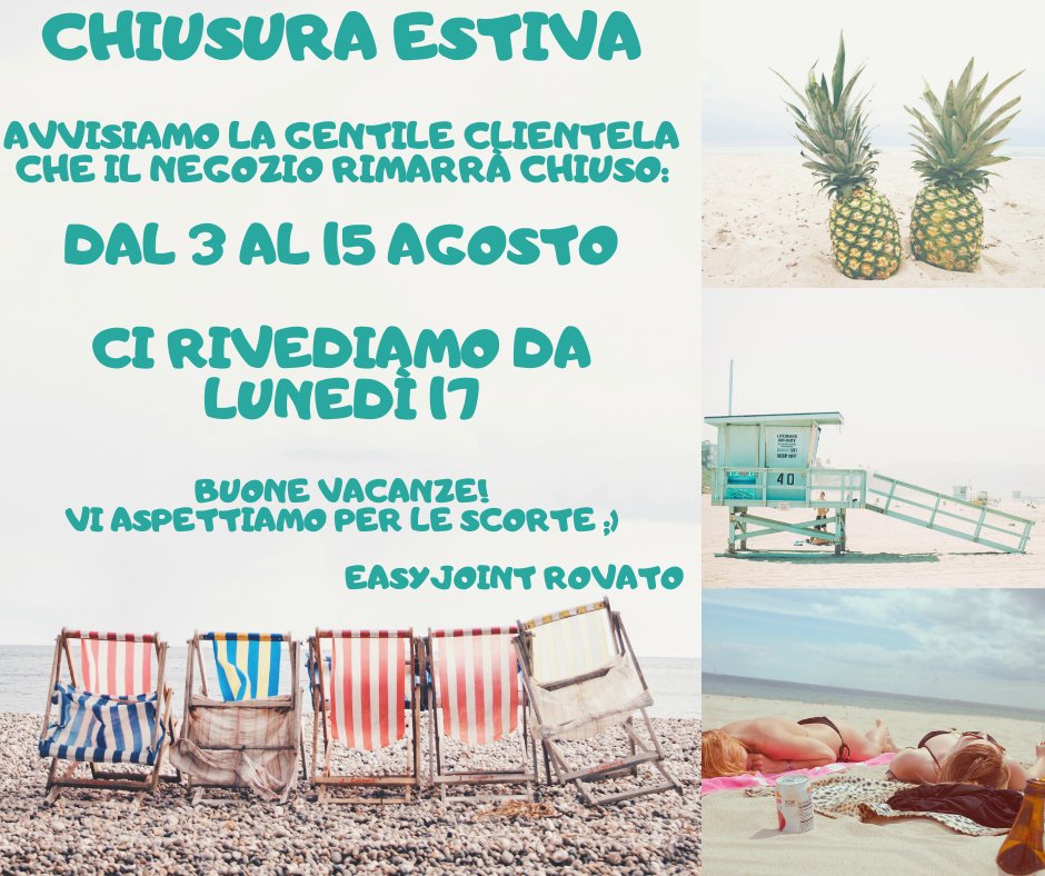 Easyjoint Rovato Brescia Chiusura Estiva Avvisiamo La Gentile Clientela Che Il Negozio Rimarra Chiuso Dal 3 Al 15 Agosto Ci Ritroviamo Con I Normali Orari A Partire