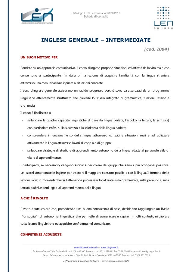 Inglese Generale Intermediate Scheda Corso Len