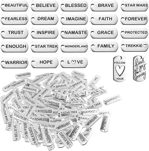 Finegood 125 Ciondoli Con Parole Motivanti In Lingua Inglese In Acciaio Inox Per Collana E Bracciale Fai Da Te Amazon It Gioielli