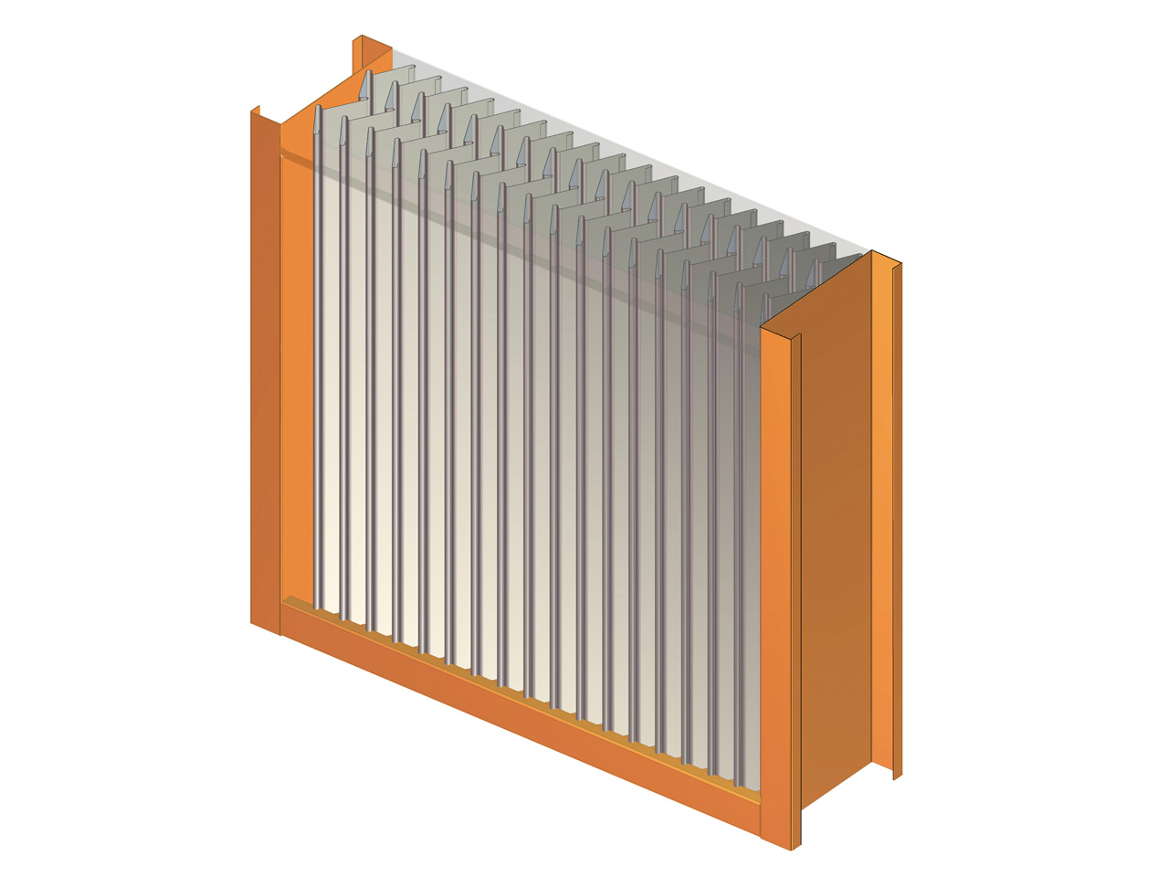 Il separatore di gocce a pannello della ThermoTrade srl viengono impiegati nella separazione di gocce di acqua presenti nel flusso dell’aria, in questo caso per flussi verticali, dove sia la separazione che la resistenza termo meccanica sono molto elevati.
