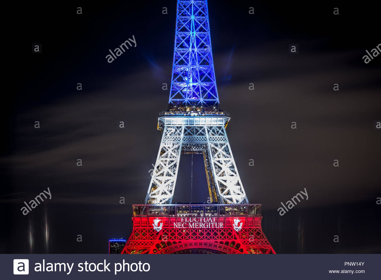 Tour Eiffel Torre Eiffel Illuminare In Blu Bianco Rosso I Colori Della Bandiera Francese A Seguito Degli Attentati Terroristici A Parigi Nel 15 Foto Stock Alamy