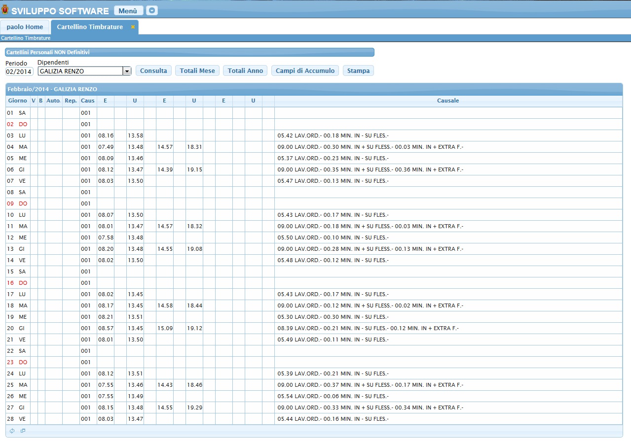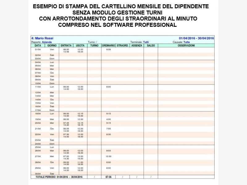Software Gestione Presenze Elaborazione Cartellino Mensile Ore Lavoro