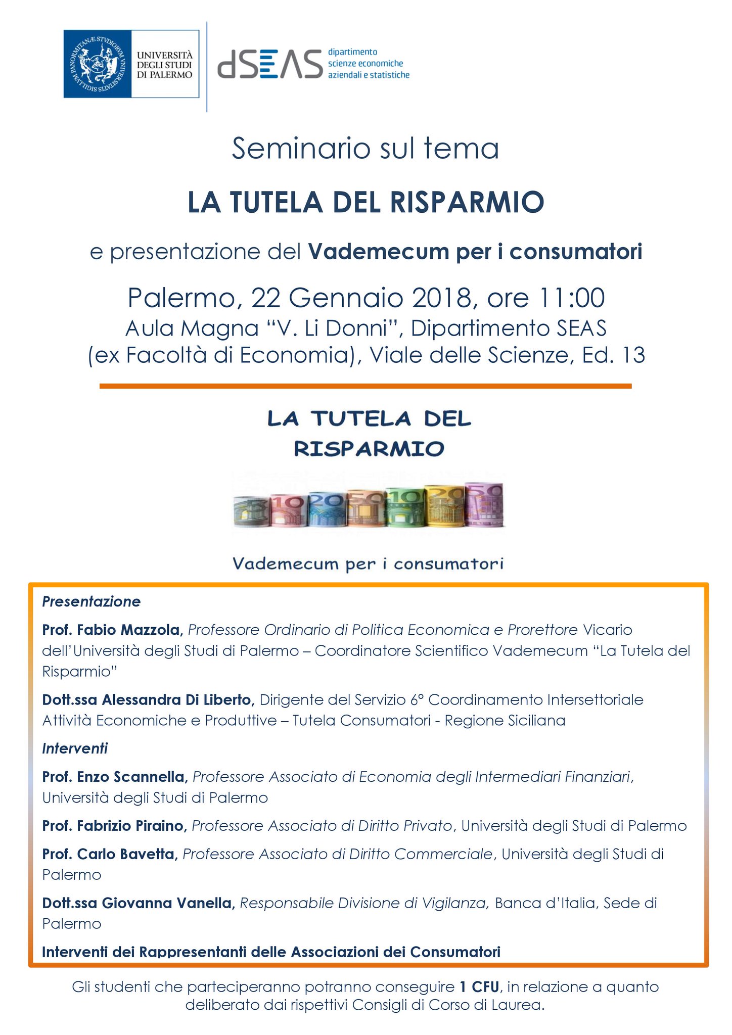 Unipa La Tutela Del Risparmio Seminario Organizzato Dal Dipartimento Di Scienze Economiche Aziendali E Statistiche Di Unipa 22 1 H 11 Aula Magna V Li Donni Ed 13 Viale Delle Scienze Info
