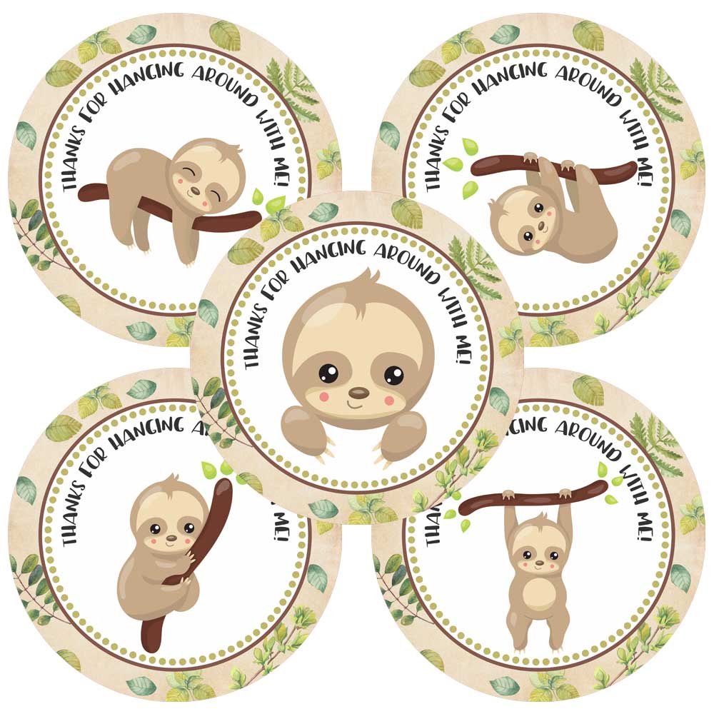 Amazon Com 40 Pack 2inch Sloth Thank You Stickers Baby Shower Or Birthday Party Sticker Hang Out Party Circle Decorations Supplies Favor Labels Toys Games