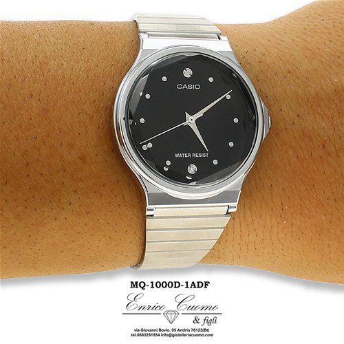 Casio Orologio 1330 Mq 1000d 1adf Orologio Elegante Da Donna Diamonds Vetro Sfaccettato Quadrante Nero Cinturino Maglia Acciaio A Fasce Gioielleria Enrico Cuomo