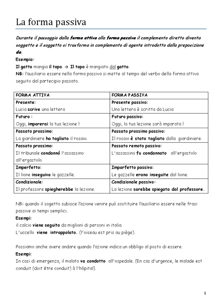 Forma Passiva Esercizi Trasforma Le Frasi Dalla Forma Attiva Alla Forma Passiva Pdf Download Gratuito