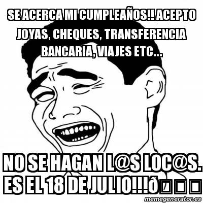 Se Acerca Mi Cumple Acepto Ropa Zapatos Carteras Viajes Efectivo Transferencia Bancaria Club Meme De Monica Robles Sdc3 Imagenes Memes Generadormemes