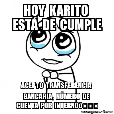 Meme Por Favor Hoy Karito Esta De Cumple Acepto Transferencia Bancaria Naºmero De Cuenta Por Internodÿ