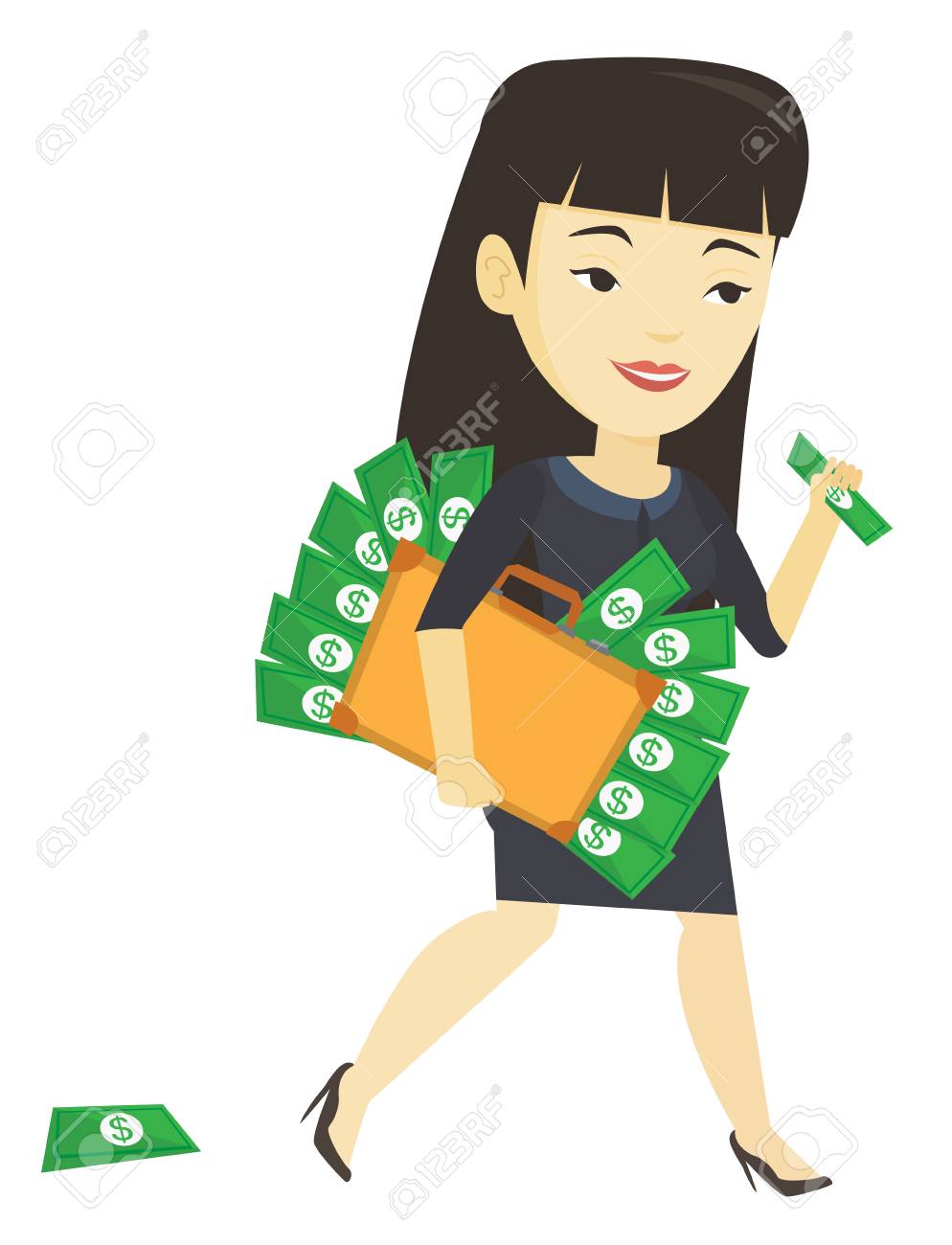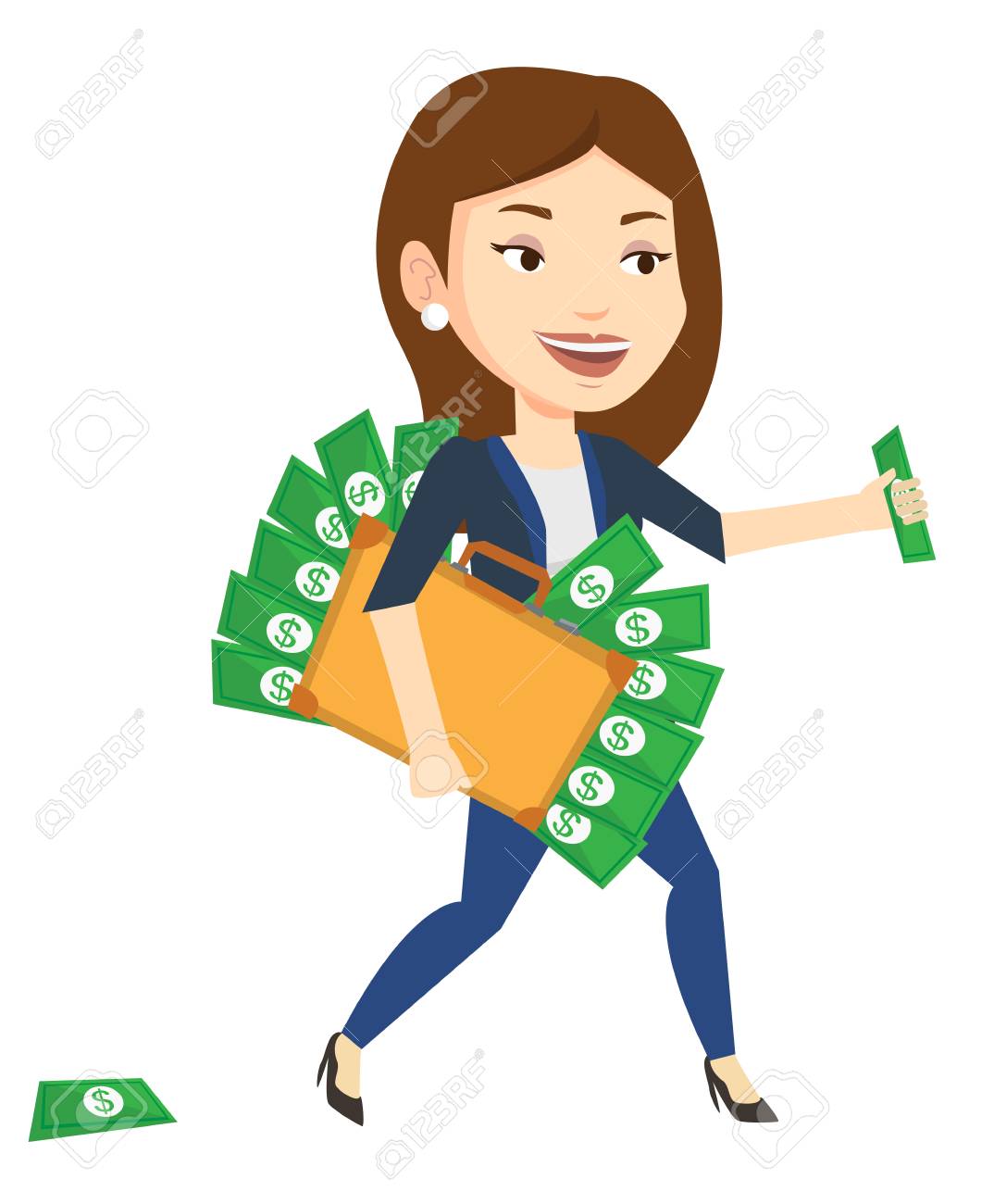 Vettoriale Donna Di Affari Che Cammina Con La Valigetta Piena Di Soldi E Commetta La Criminalita Economica Donna Affari Rubare Soldi Concetto Di Crimine Economico Vector Illustrazione Di Design Piatto Isolato