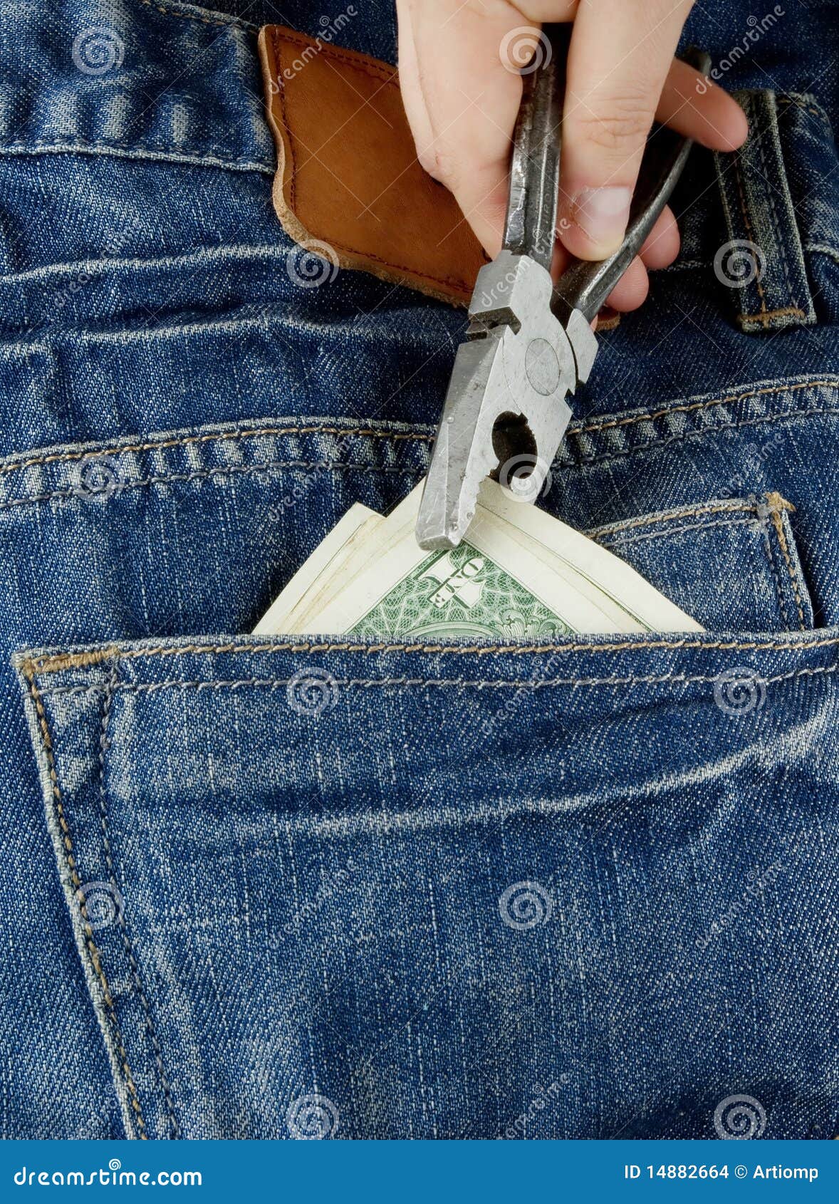 Rubare Soldi Dalla Tasca Posteriore Dei Jeans Fotografia Stock Immagine Di Banconota Esterno