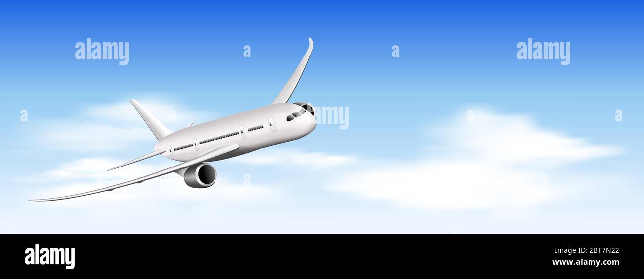 Airplane On A Background Of Blue Sky And White Clouds A Plane Flying In The Sky Stock Vector Image Art Alamy