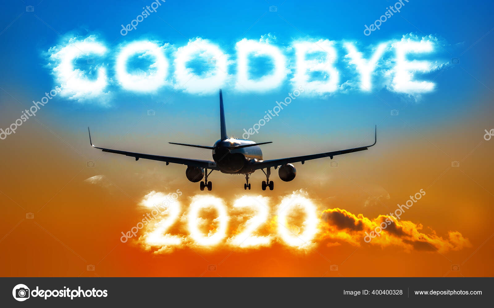 A Plane Flying Into The Distance Cloud Shaped Inscription Goodbye Stock Photo C Shellexx
