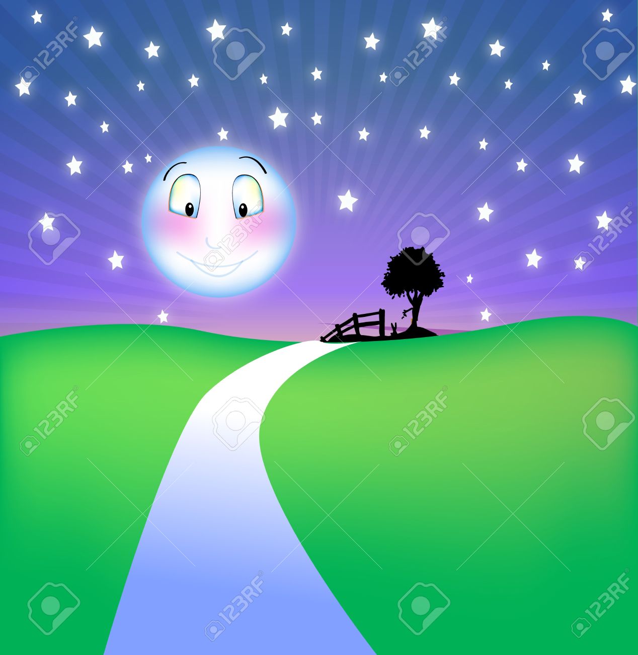 Immagini Stock Sorridente Luna Sulla Sommita Delle Colline E Un Fresco E Dolce Notte Image