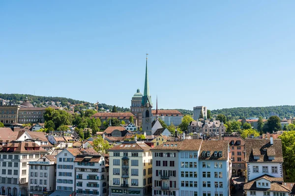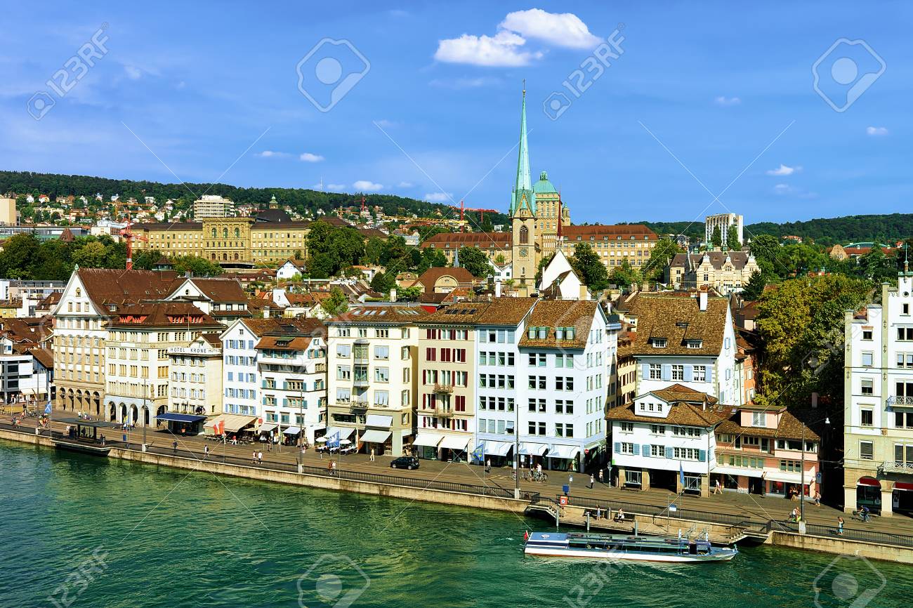 Immagini Stock Predigerkirche E Limmatquai Visto Dalla Collina Di Lindenhof A Zurigo Svizzera Universita Di Zurigo Sullo Sfondo Image