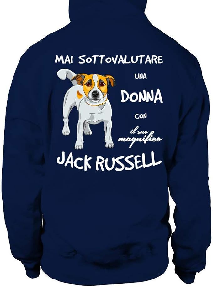 Felpa Con Cappuccio Unisex Mai Sottovalutare Una Donna Con Il Suo Magnifico Jack Russell Amazon It Abbigliamento