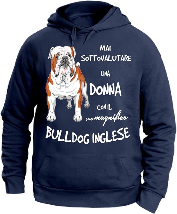 12print Felpa Con Cappuccio Mai Sottovalutare Una Donna Con Il Suo Bulldog Inglese Amazon It Abbigliamento