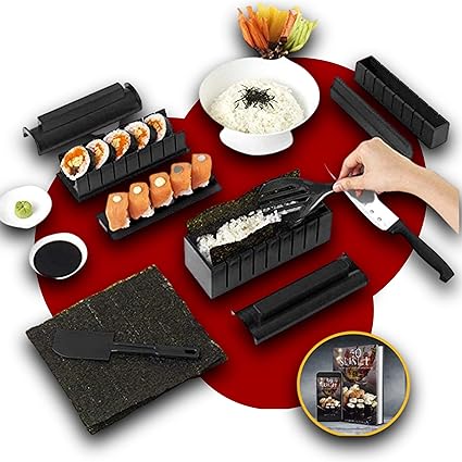 Luspo Sushi Maker Kit Set Sushi Completi Ebook 50 Ricette In Italiano 11 Pezzi Con Coltello Da Sushi Expert Cottura Del Riso Accessori Da Cucina Giapponese Amazon It Casa E Cucina