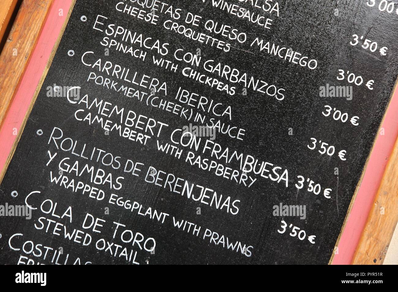 Primo Piano Di Un Poster Del Menu In Un Tipico Ristorante Spagnolo Sevilla Andalusia Spagna Foto Stock Alamy