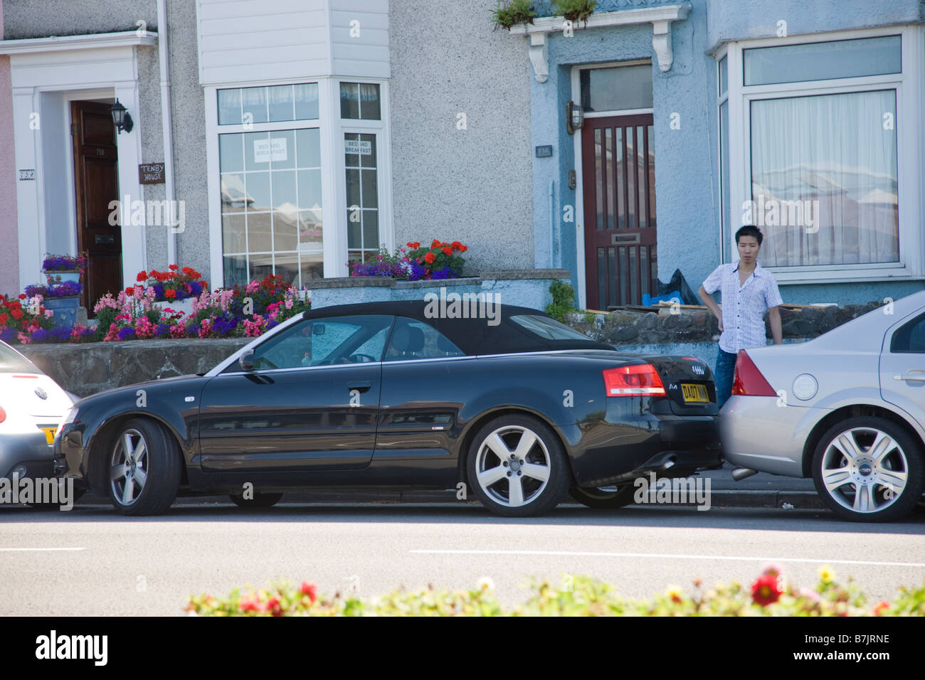 Un Audi Auto Sportiva Manovre Al Di Fuori Di Un Molto Stretta Strada Di Spazio Di Parcheggio Foto Stock Alamy