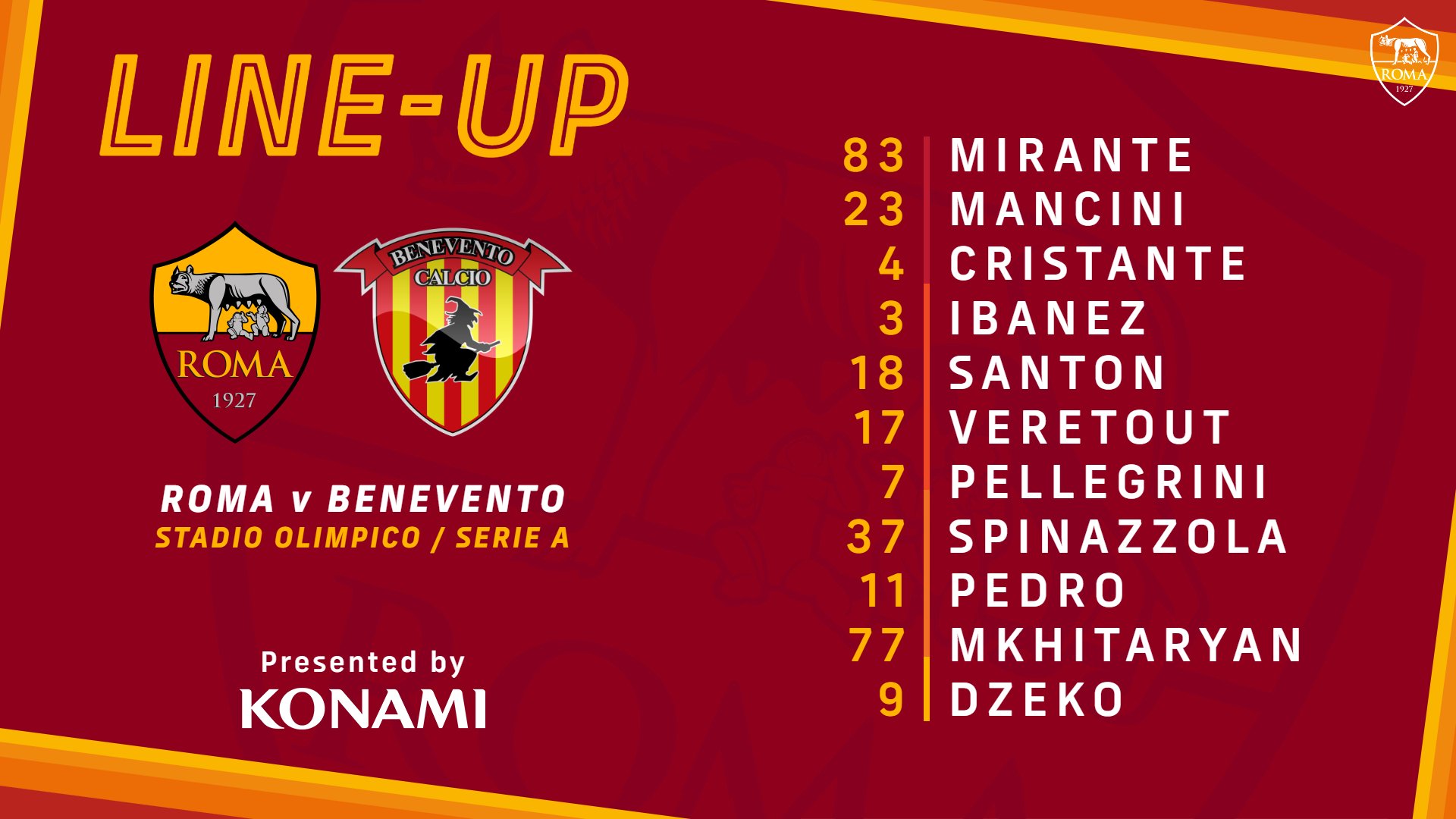 As Roma English Team News Here S The Starting Xi For Tonight S Game At The Stadio Olimpico Daje Asroma Romabenevento T Co 31juzlwow7