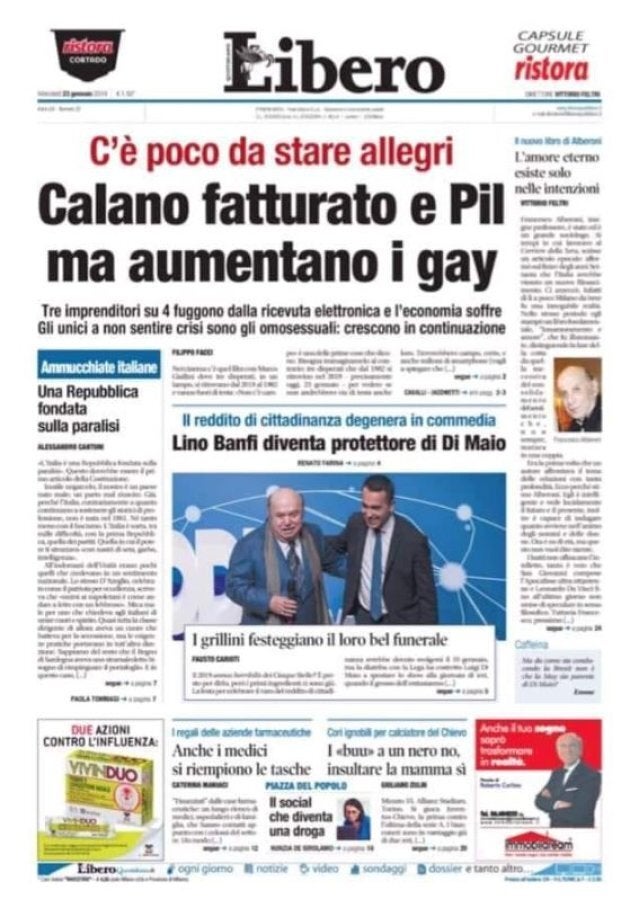 Cala Il Pil Aumentano I Gay Il Titolo Di Libero Suscita La Reazione Della Rete L Huffpost