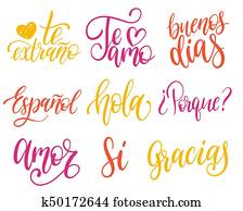 Vector L Insieme Calligrafico Della Traduzione Spagnola Thank Voi Buon Giorno Ecc Raccolta Comune Dell Iscrizione Della Mano Di Illustrazione Vettoriale Illustrazione Di Spagnola Comune