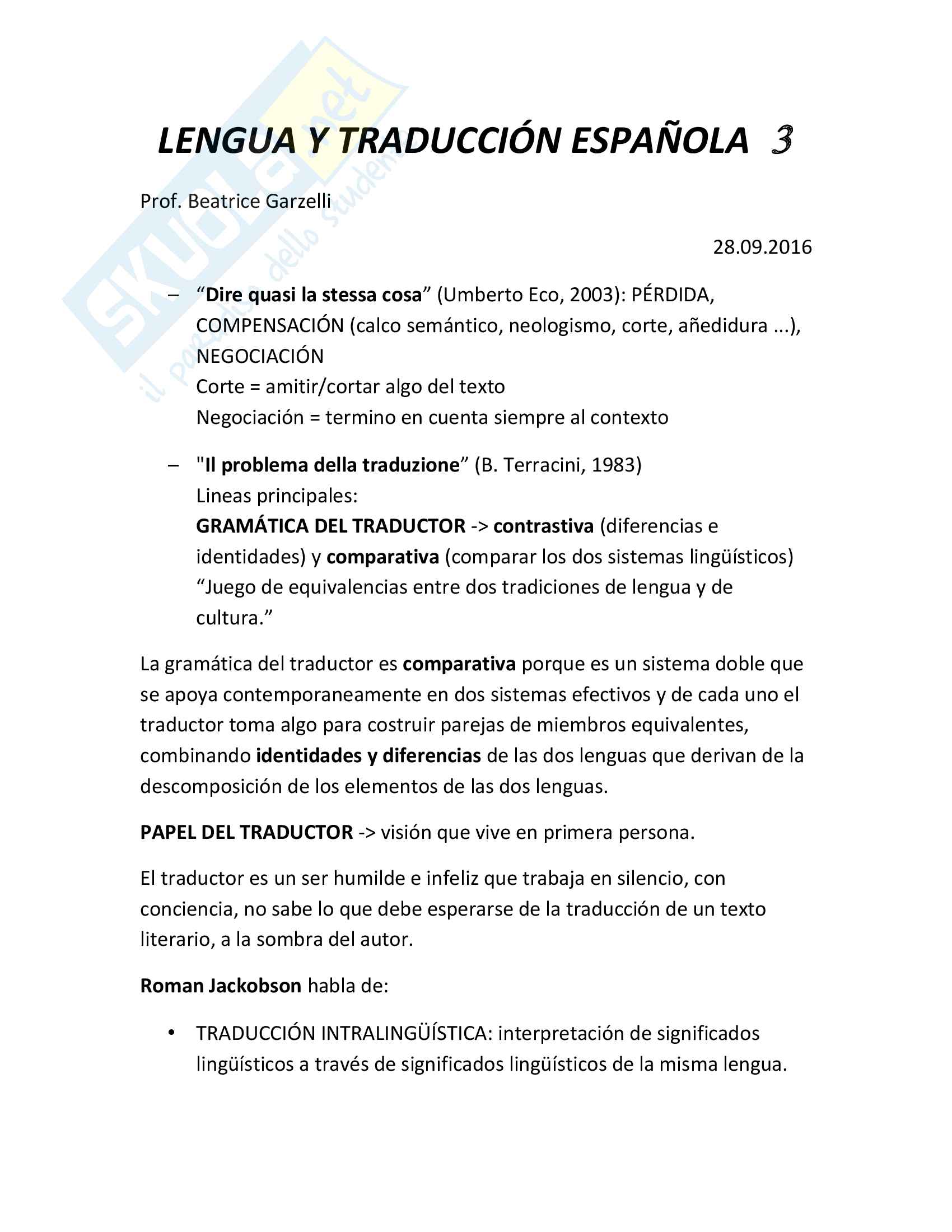 Appunti Esame Lingua E Traduzione Spagnola Iii Prof Garzelli