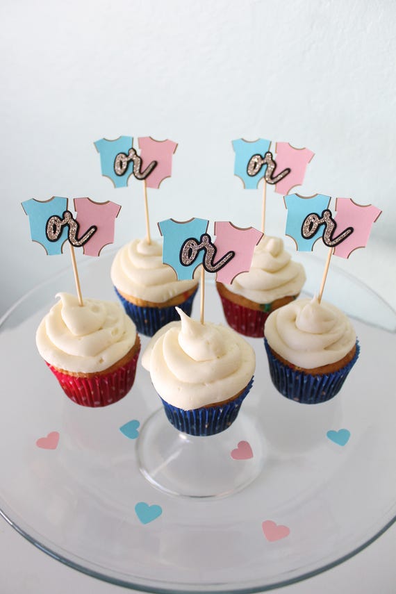 Gender Reveal Decor Boy Or Girl Onesie Cupcake Toppers Set Etsy