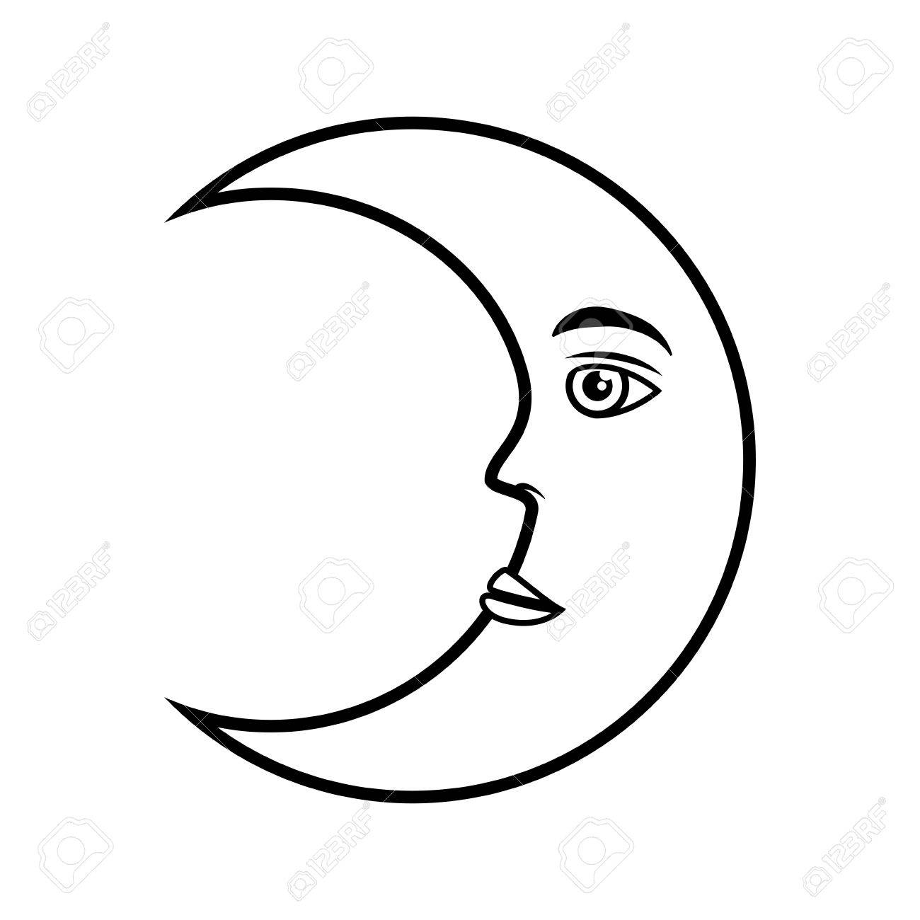 Moon Crescent Face Night Nature Moonlight Vector Illustration Royalty Free Cliparts Vectors And Stock Illustration Image