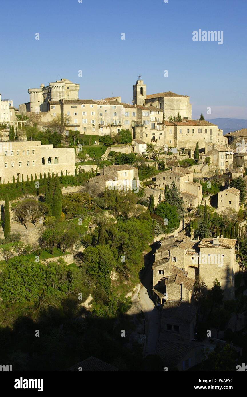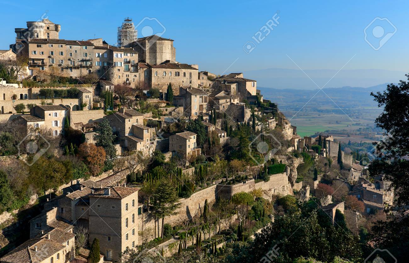 Vista A Gordes Es Un Pueblo Muy Bello En La Cima De Una Colina En Francia Region De Provence Alpes Cote D Azur Fotos Retratos Imagenes Y Fotografia De Archivo Libres De Derecho Image