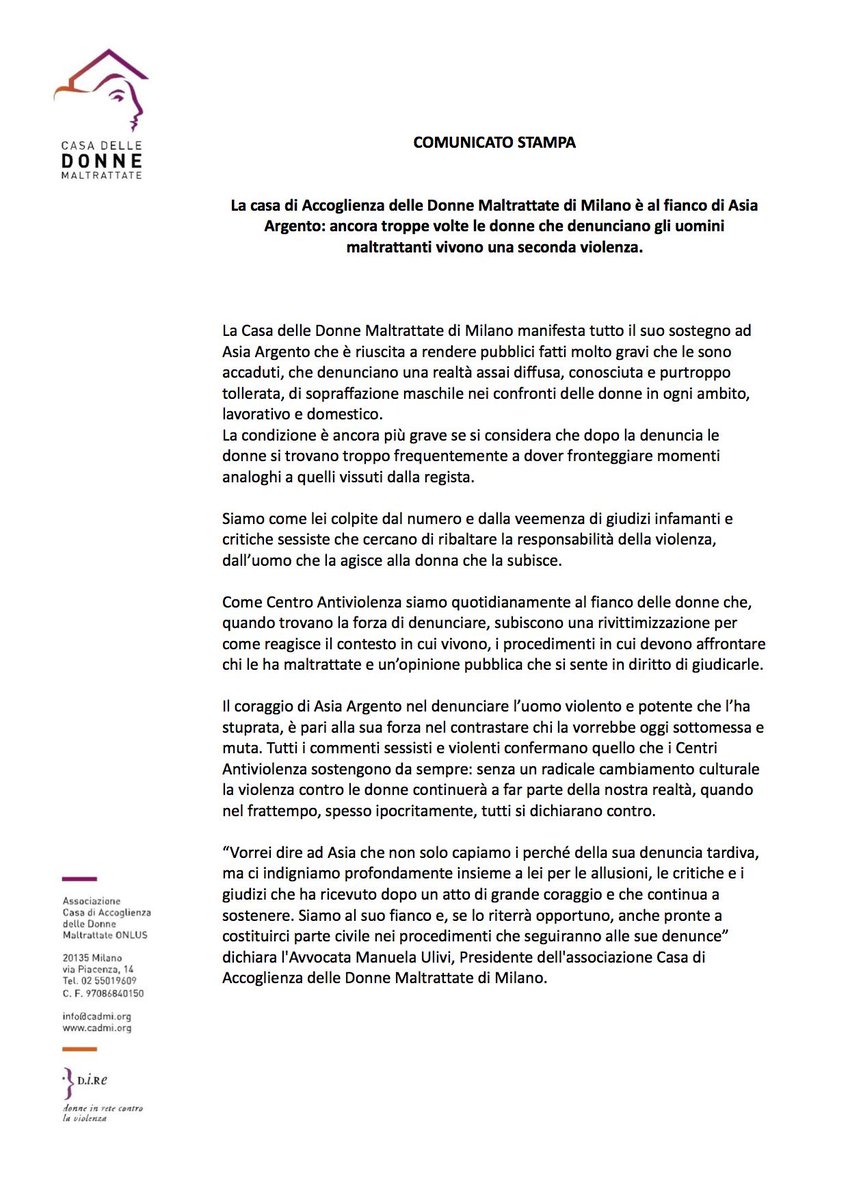 Casa Di Accoglienza Delle Donne Cadmi E Al Fianco Di Asiaargento Ancora Troppe Volte Le Donne Che Denunciano Gli Uomini Maltrattanti Vivono Una Seconda Violenza T Co 0e3q8lgocr