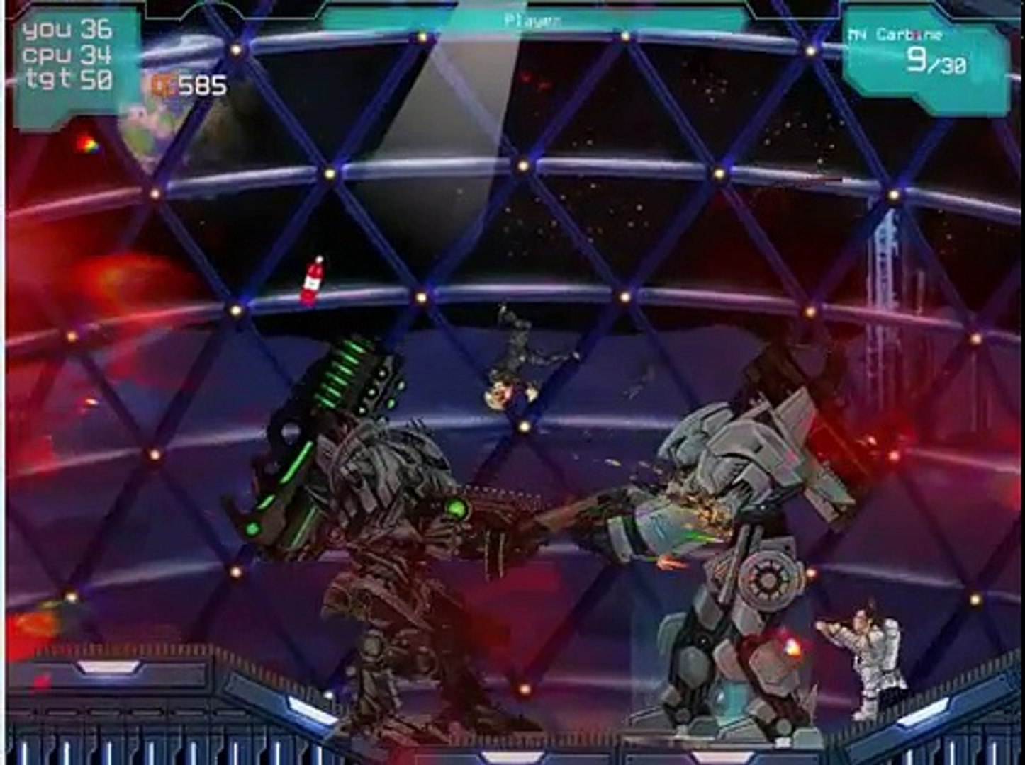 Alien Attack Team 2 is a shooting game where you can use giant robots in order to kill all of your enemies on the stages The concept of the game is unique and there will be one more character which will follow you You can switch between the characters and perform double jumps in order to reach the heights which you can’t reach. Alien Attack Team 2 Your mission is to kill as many of the enemies as you can before you die Move through the giant space ship and try to defeat the evil forces using your wide arsenal of weapons Defend the human race!.