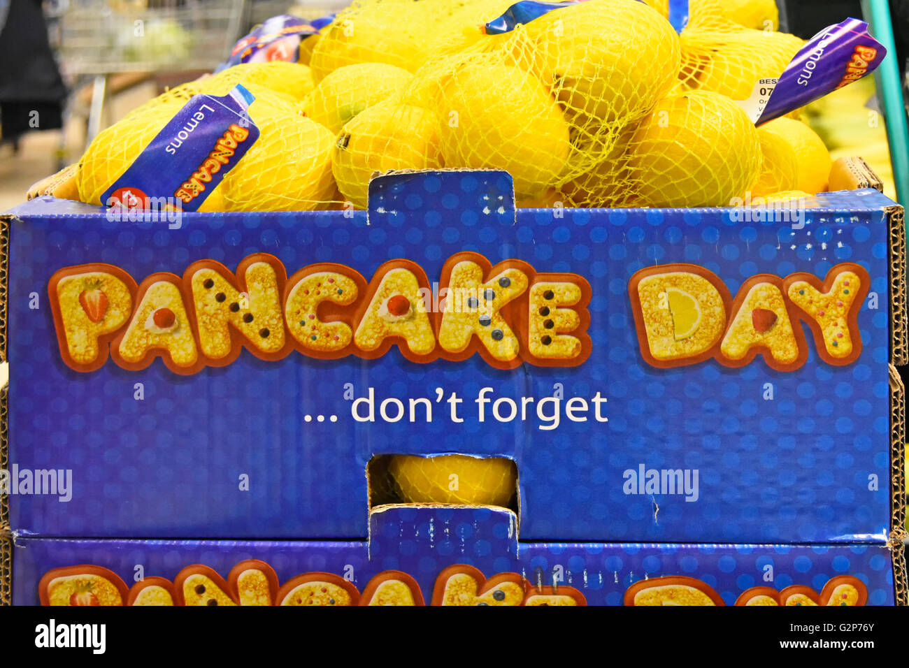 Inglese Regno Unito Supermercato Negozio Di Alimentari Shopping Display Di Promozione Non Dimenticare Pancake Giorno Limoni Venduti In Sacchetti Di Stringa Fornita Al Negozio In Scatola Di Cartone Foto Stock Alamy