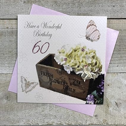 Carte Di Cotone Bianco 175 60 Fiori Nel Design Scatola Di Cartone Con Mano 152 4 Cm 60 Compleanno Con Testo Inglese Bianco Amazon It Casa E Cucina