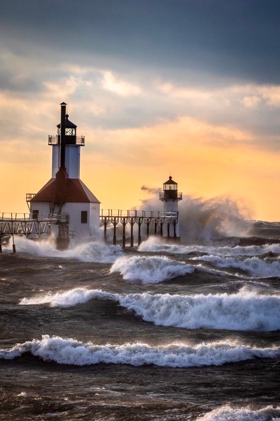 Crashing In Michigan Photography St Joseph Lighthouse Etsy