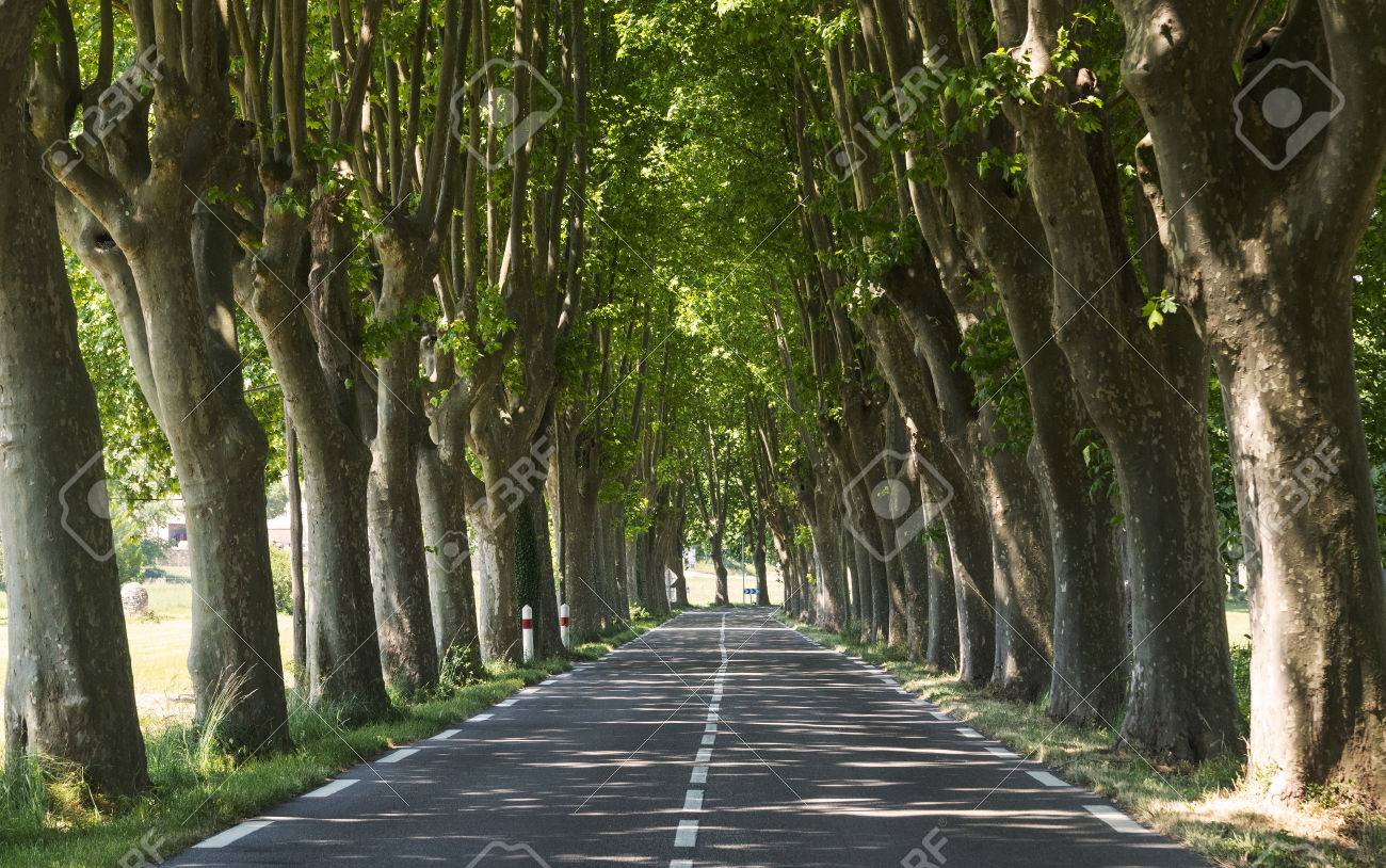 Carretera Tipica De La Provenza Entre Apt Y Manosque Provenza Alpes Costa Azul Francia Con Hileras De Arboles En Junio Fotos Retratos Imagenes Y Fotografia De Archivo Libres De Derecho Image