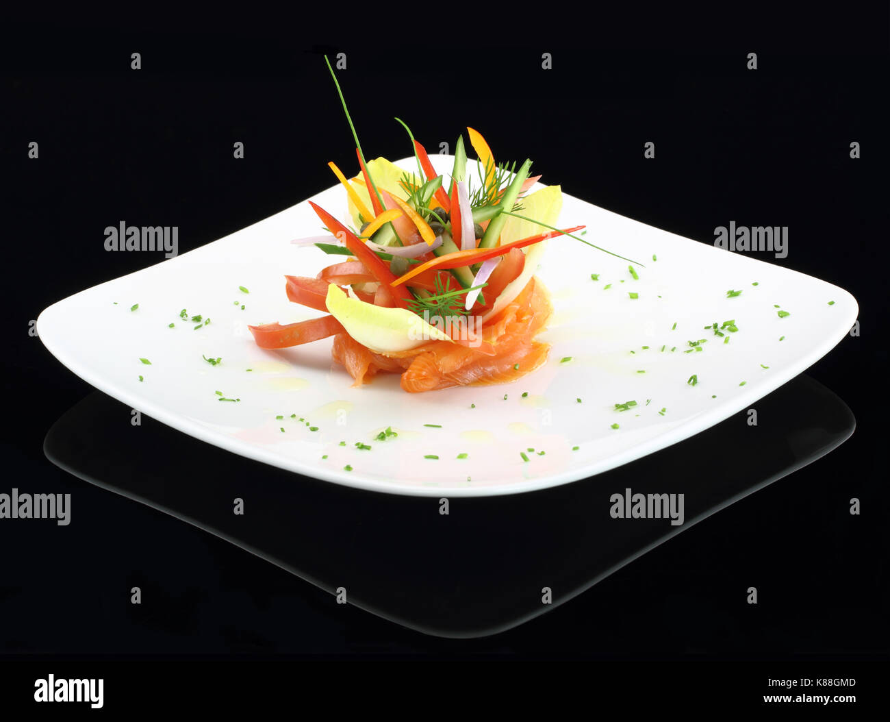 Piatto Gourmet Salmone Affumicato Con Verdure Foto Stock Alamy