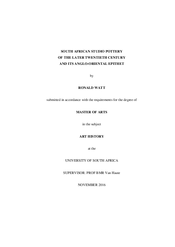 Pdf South African Studio Pottery Of The Later Twentieth Centruy And Its Anglo Oriental Epithet Ronnie Watt Ph D Academia Edu